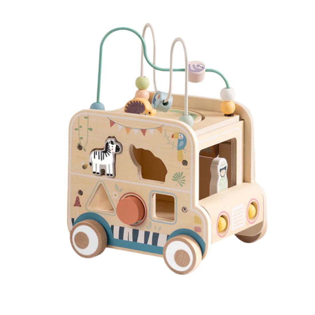 Jipe do Explorador em Madeira Tooky Toy ou Versatile Hunting Vehicle, em seu nome original, é como um cubo de atividades multifuncional, projetado para crianças pequenas, geralmente bebês e crianças em idade pré-escolar.